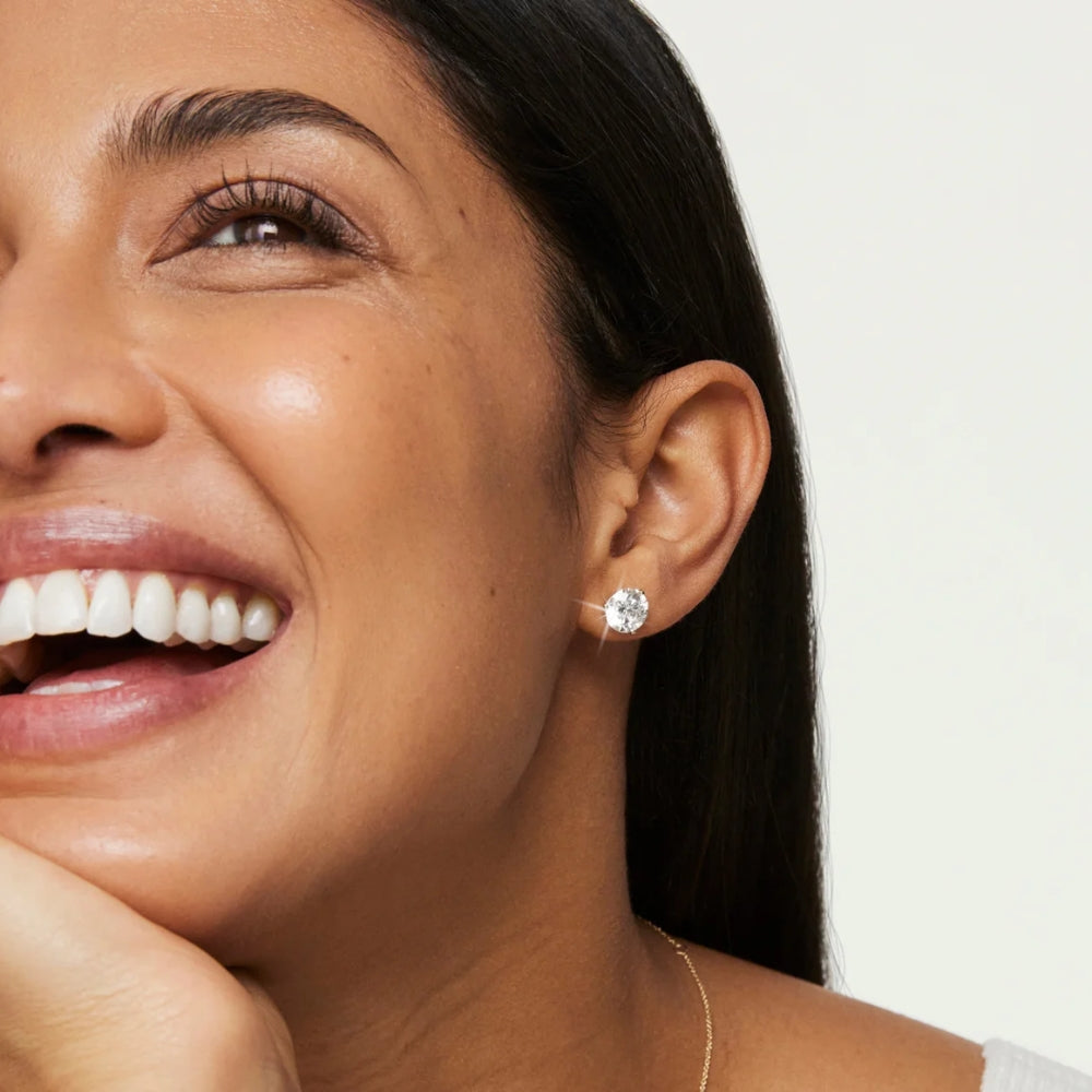 Handcrafted in 14k yellow gold with 6.00ct total of round brilliant cut lab-grown diamonds. Includes push-back earring backings.