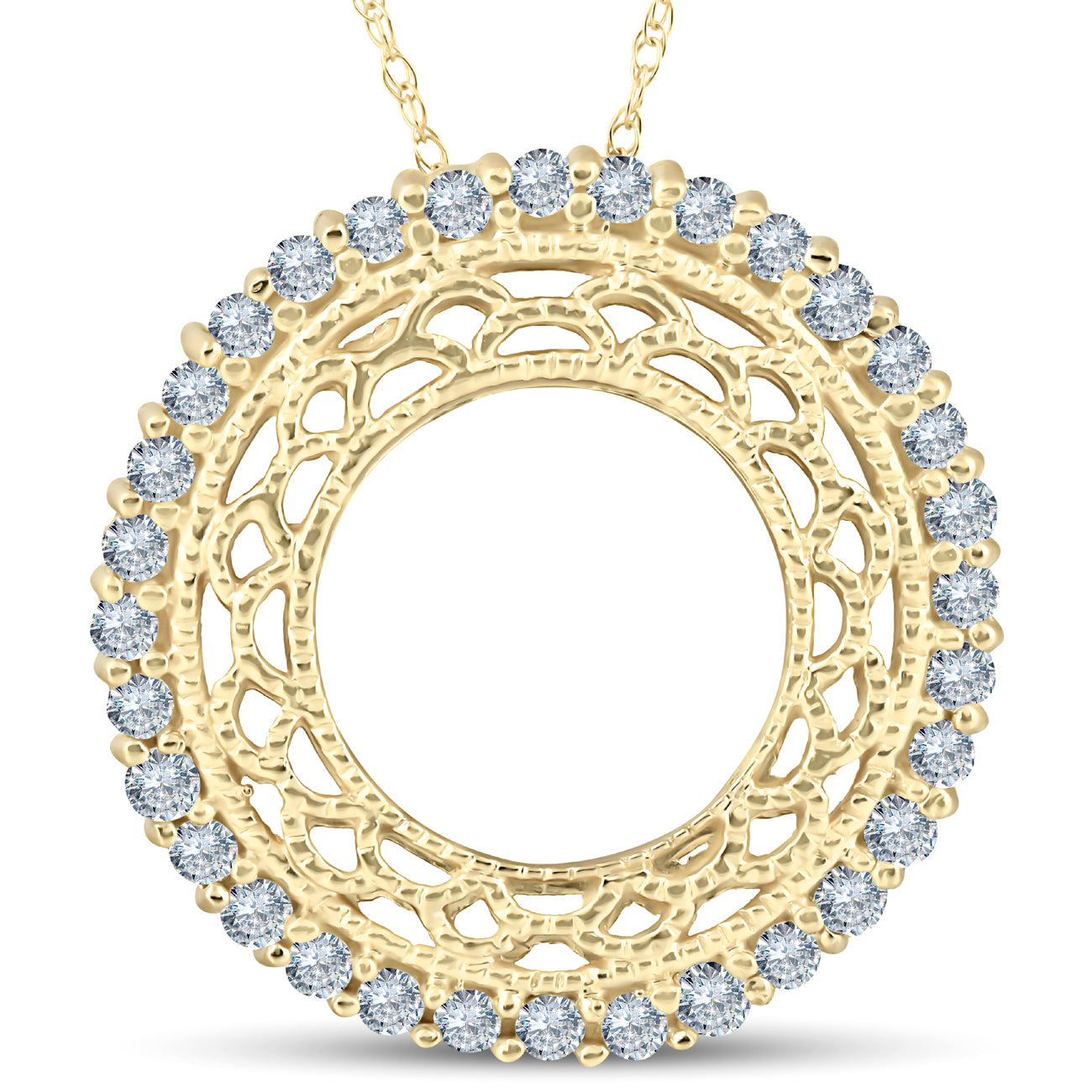 1/2 CT Vintage Diamond Circle Pendant 14K Yellow Gold