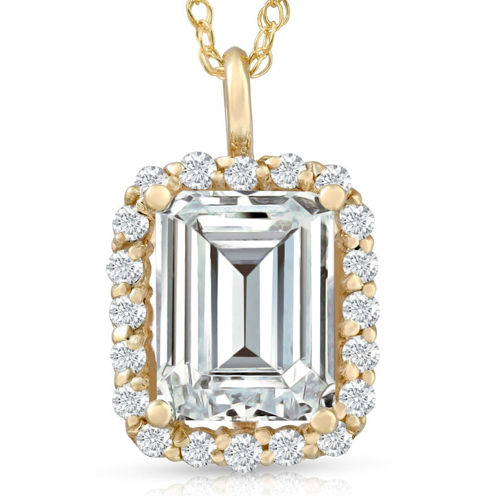 3 1/2 Ct Emerald Moissanite & Lab Grown Diamond Halo Pendant 14k Gold Necklace