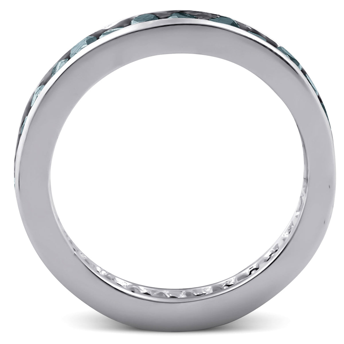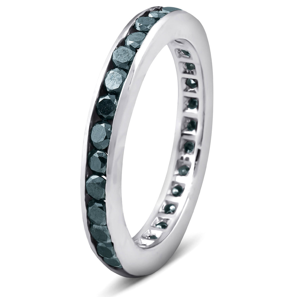 Crafted in solid 14k white gold with heat-treated black diamonds totaling 1 1/2 carats. Channel set in a polished eternity design.