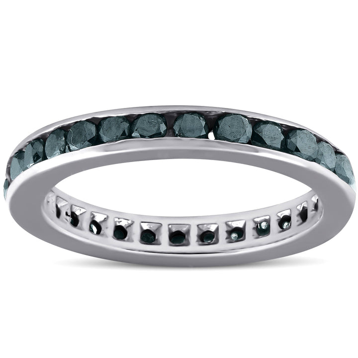 1 1/2 CT Treated Black Diamond Channel Set Eternity Ring 14K White Gold