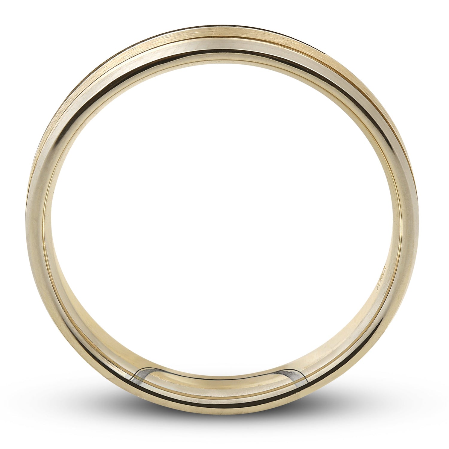 14K White and Yellow Gold, satin center, polished edges, 4mm width.