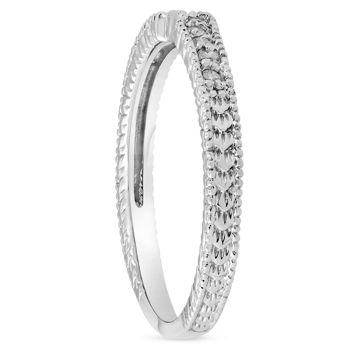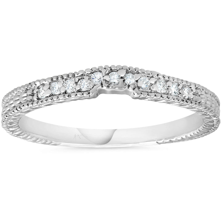 1/10ct Vintage Diamond Notched Wedding Ring 14K White Gold