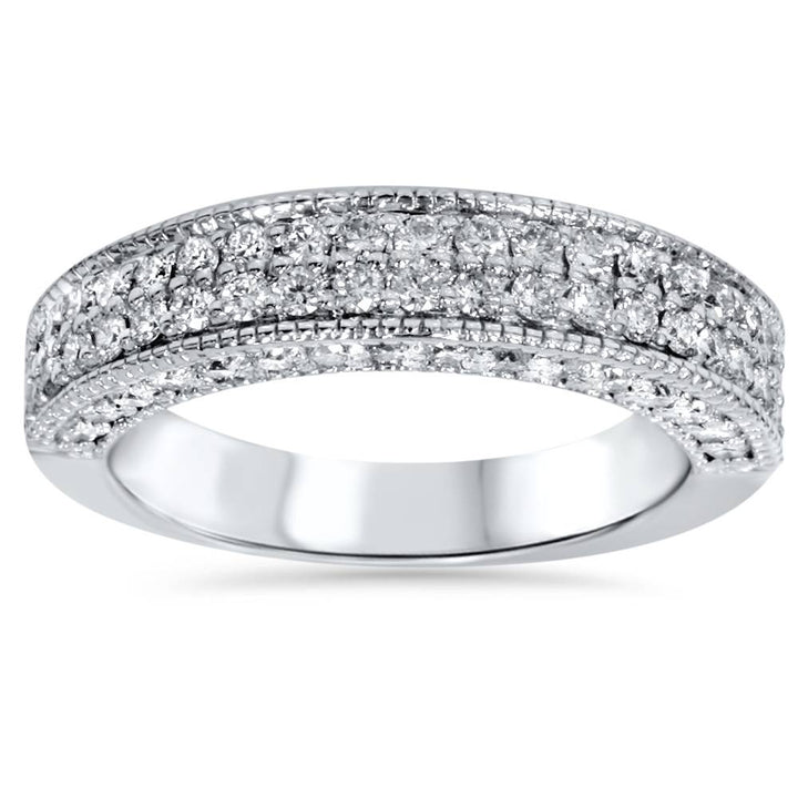 1 1/10ct Pave Diamond Wedding Ring 14K White Gold