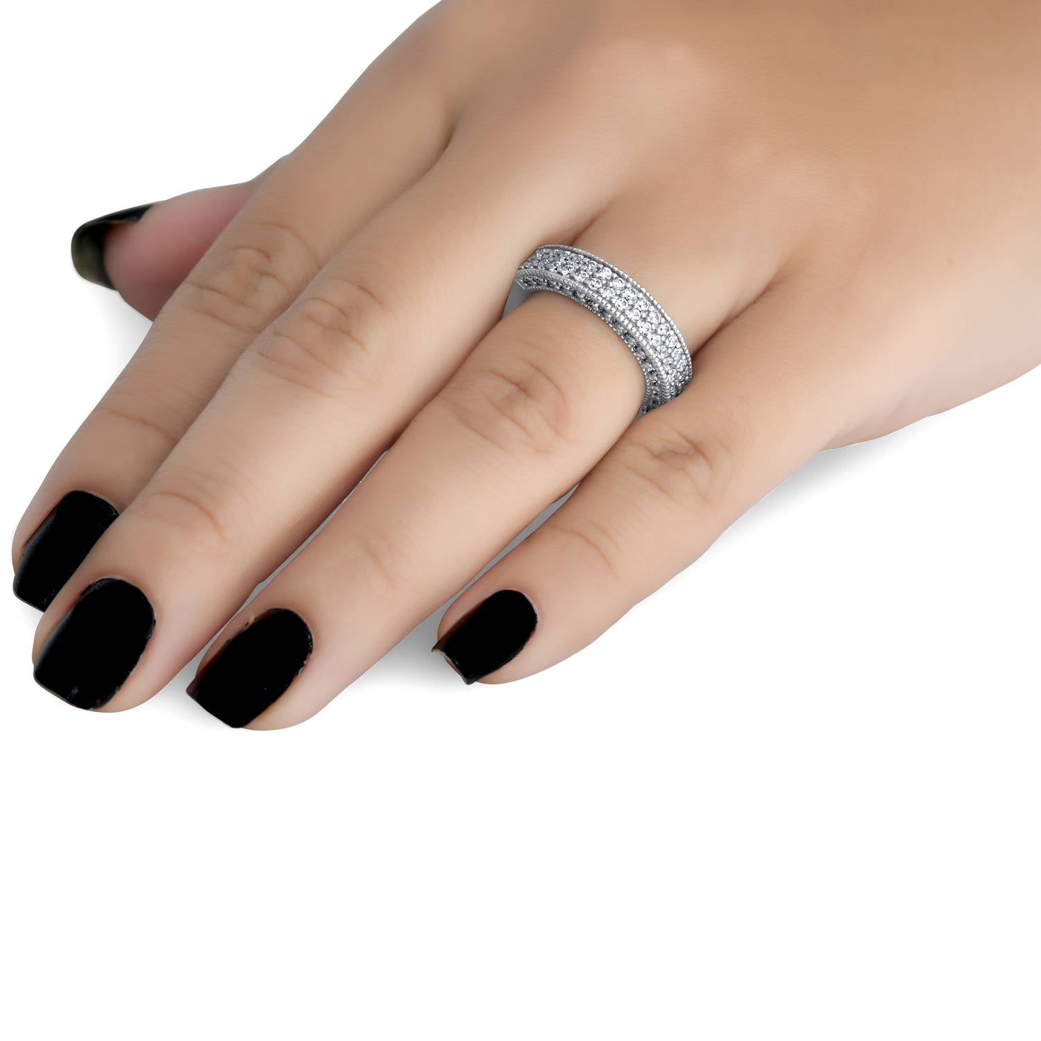 This 1 1/10ct Pave Diamond Wedding Ring by Pompeii3 features 70 round natural diamonds, all pave-set in solid 14K white gold. The diamonds encircle the entire band, creating a stunning, continuous sparkle that makes this eternity ring perfect as a wedding band or for stacking with other rings.