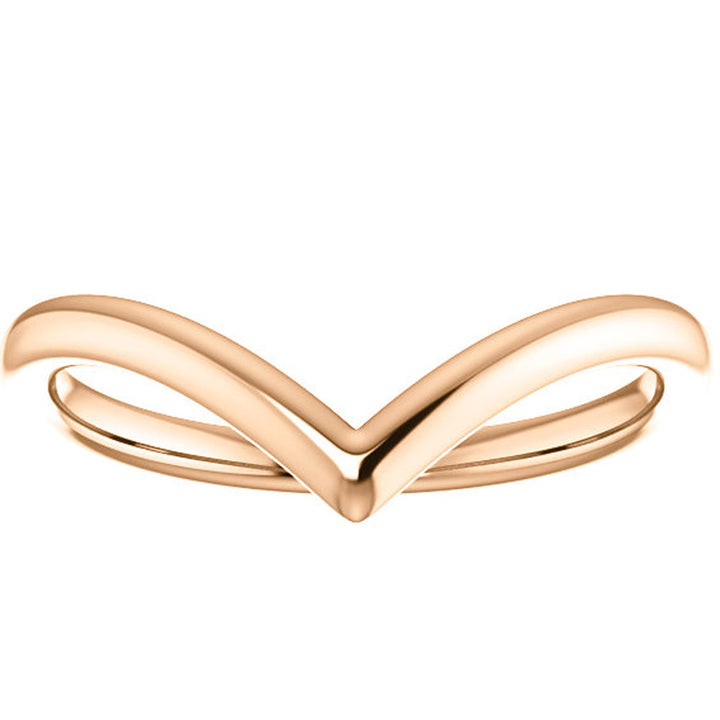 Crafted in 14K white, yellow, or rose gold, designed as a solid cast polished band with a slight V curve.