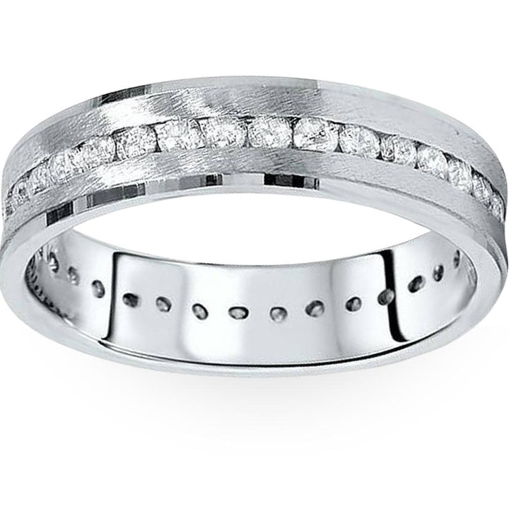1 1/4ct Channel Set Diamond Brushed Ring 14K White Gold
