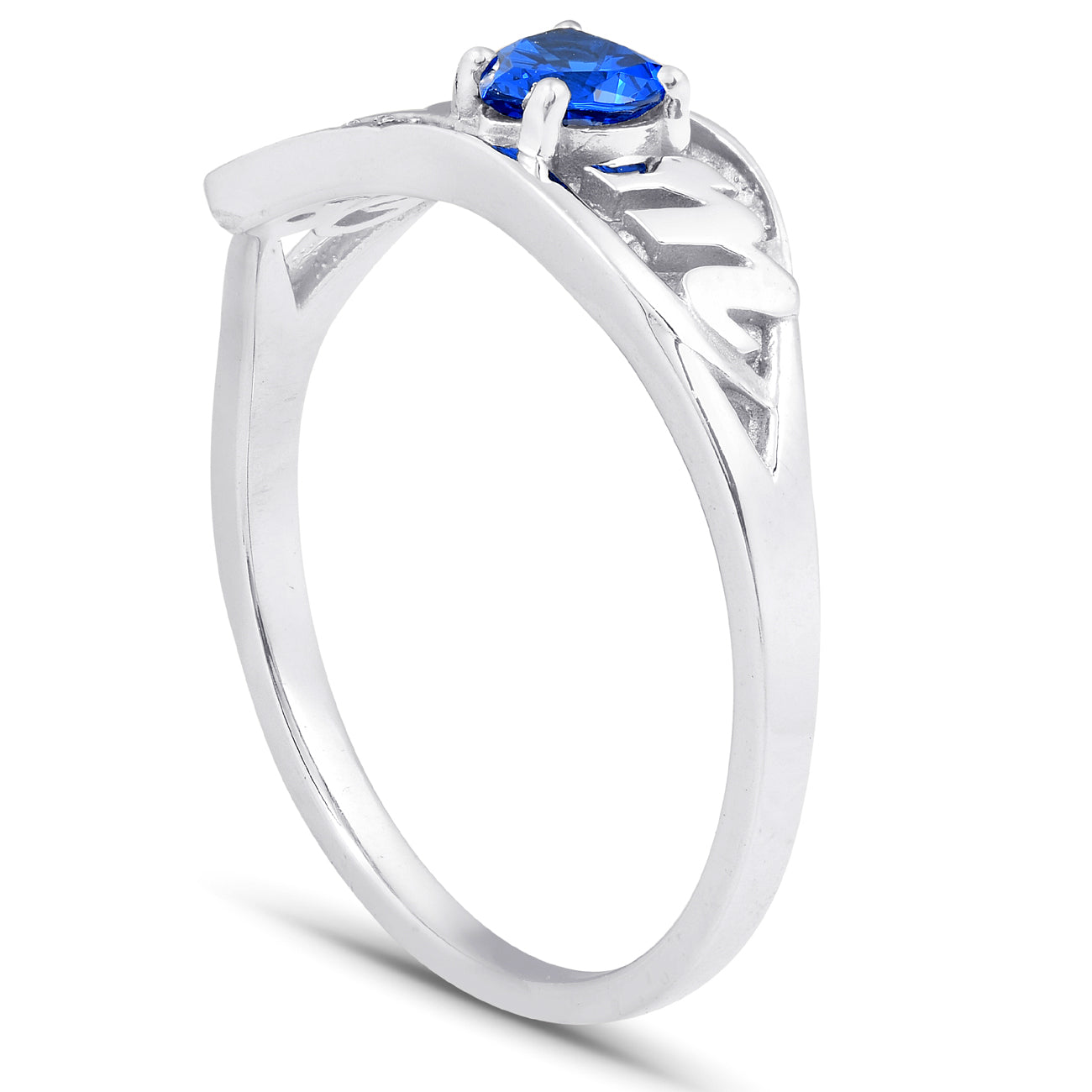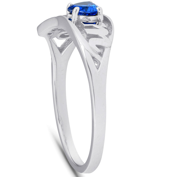 5/8 ct Blue Heart Sapphire & Diamond MOM Ring 10K White Gold