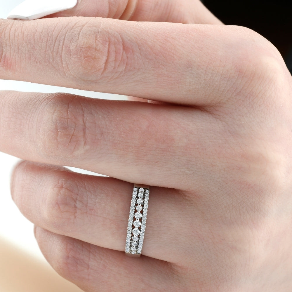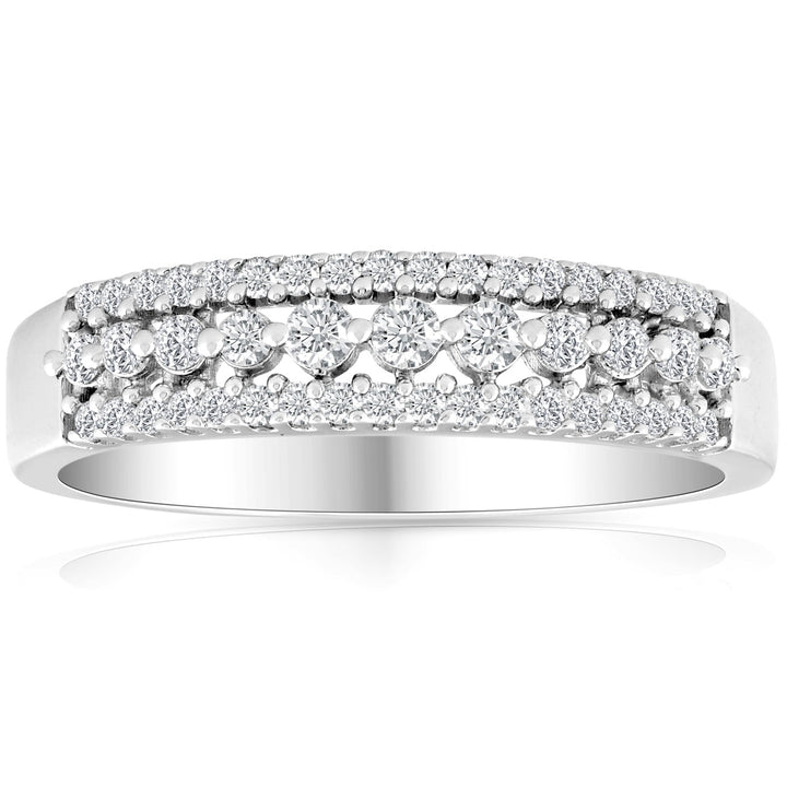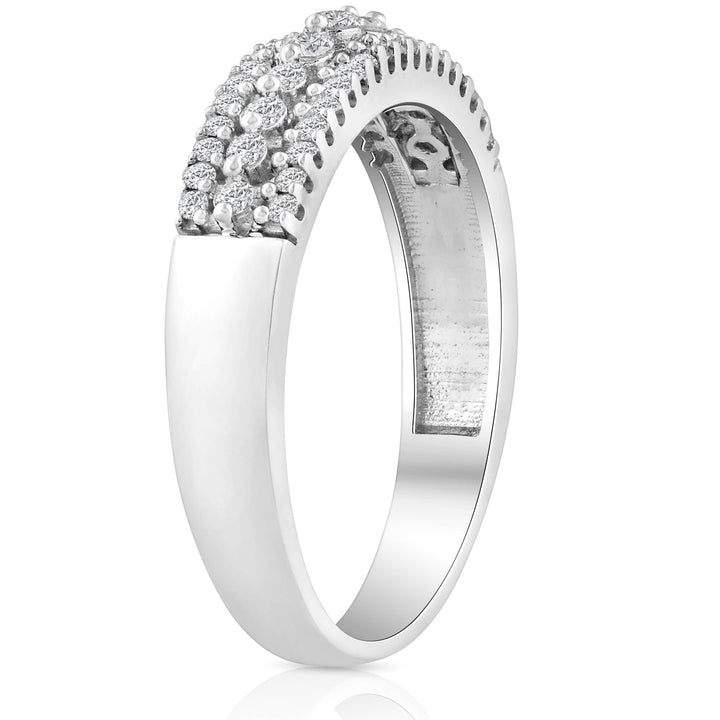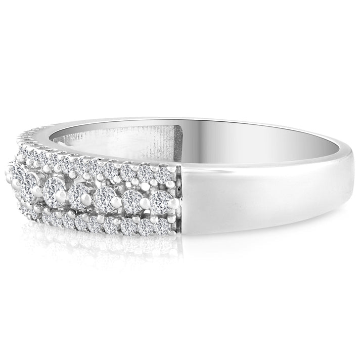 This 1/3 carat Diamond Wedding Ring by Pompeii3 features sparkling brilliance with 47 round natural diamonds meticulously set in gleaming 10k white gold. A perfect symbol of everlasting commitment.
