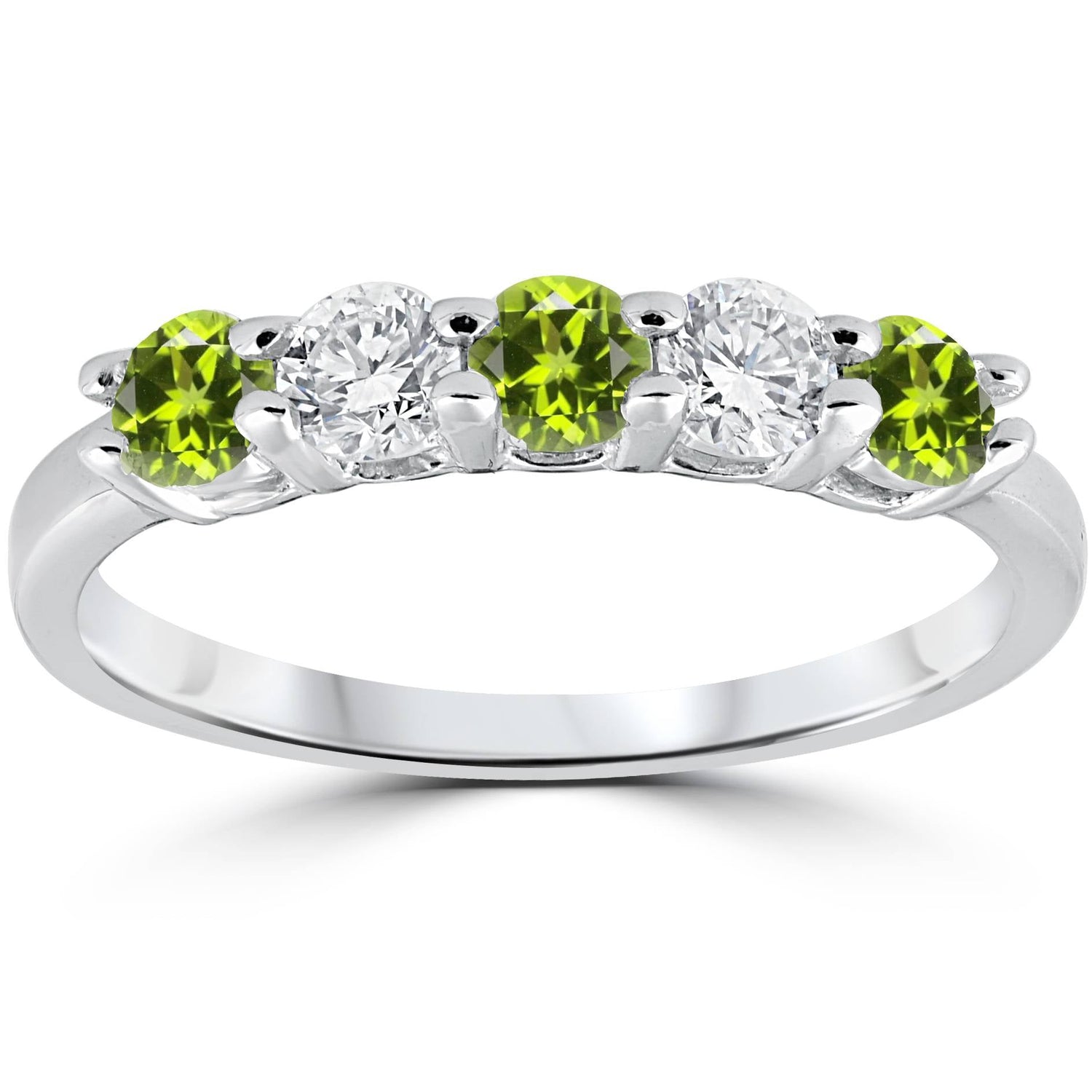 1/2 CT Peridot & Diamond 5 Stone Ring 14k White Gold