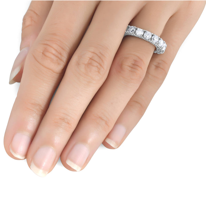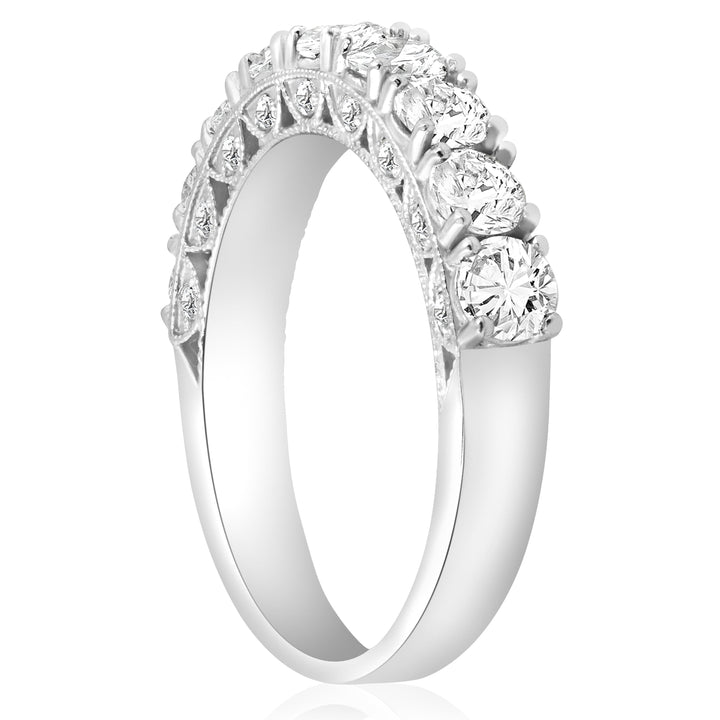 This 1 1/2ct Vintage Diamond Wedding Ring by Pompeii3 evokes timeless romance with its vintage-inspired elegance. Nine large sparkling diamonds form a bold center, accented by intricate side detailing featuring additional diamonds along the wall for added brilliance. Designed to celebrate everlasting love, this ring exudes sophistication and charm for your special day or as a treasured heirloom.