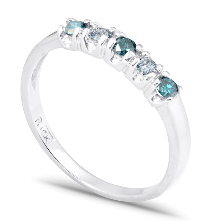 1/4ct Treated Blue & White Diamond 5-Stone Wedding Women's Ring 10K White Gold
