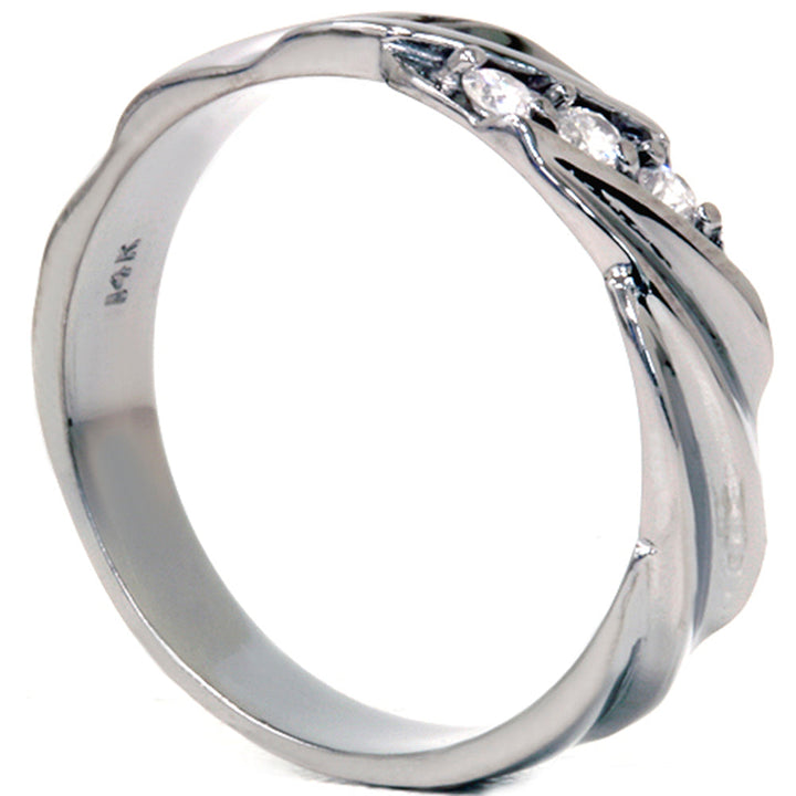 This Diamond Ring in 14K Black Gold by Pompeii3 features three round brilliant-cut natural diamonds with a total weight of 1/5ct. The unique 14K black gold setting enhances the diamonds' natural sparkle while offering a bold, contemporary look. Perfect for those who prefer distinctive and edgy designs, this ring combines elegance with a touch of modernity.