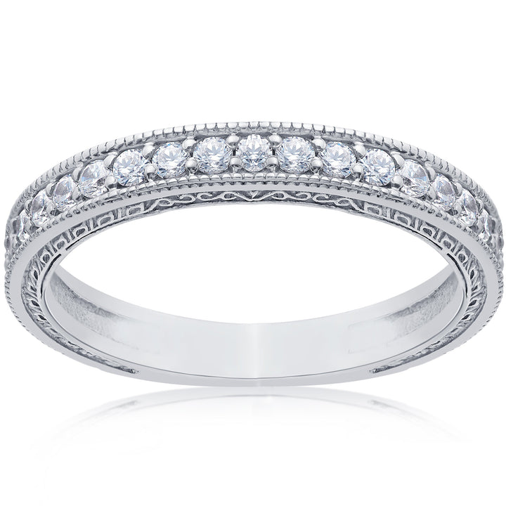 1/2 CT Vintage Diamond Wedding Ring 14K White Gold