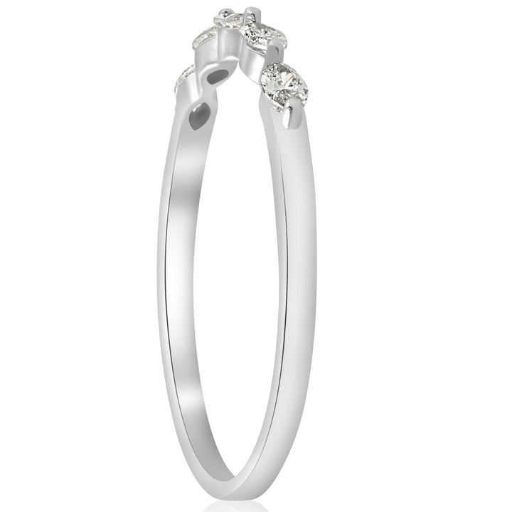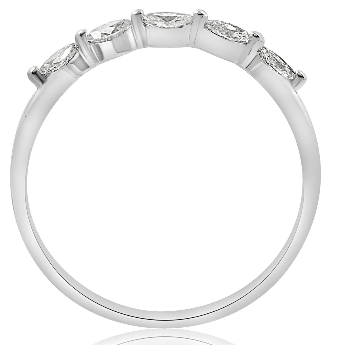 This 1/2ct Marquise Diamond Five Stone Wedding Ring by Pompeii3 celebrates elegance in its purest form. Featuring five exquisite marquise-cut diamonds set in luminous white gold, this ring offers a graceful, elongated silhouette, making it the perfect symbol of unity and strength.