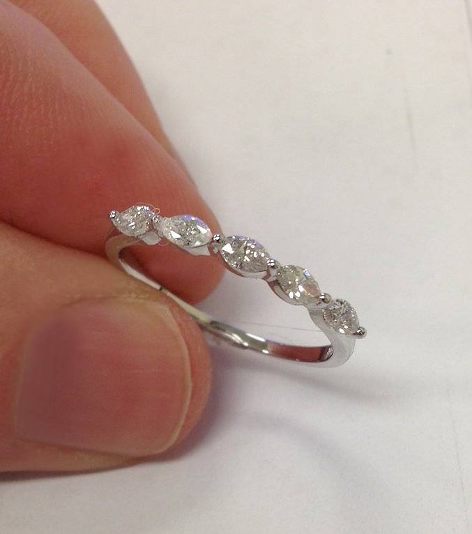 1/2 CT Marquise Diamond Five Stone Wedding Ring 14K White Gold