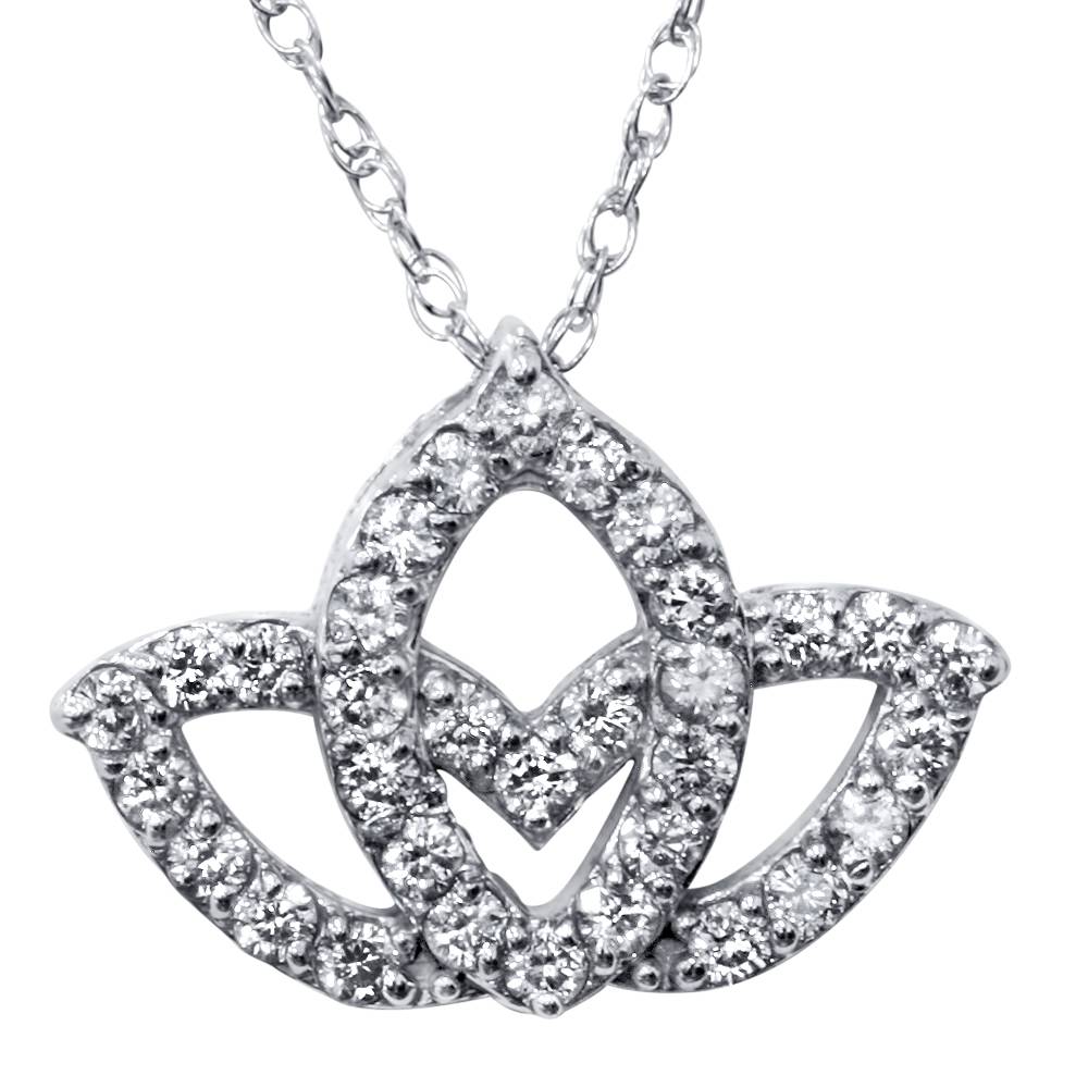 3/8 ct Diamond Lotus Flower Pendant Necklace 14K White Gold