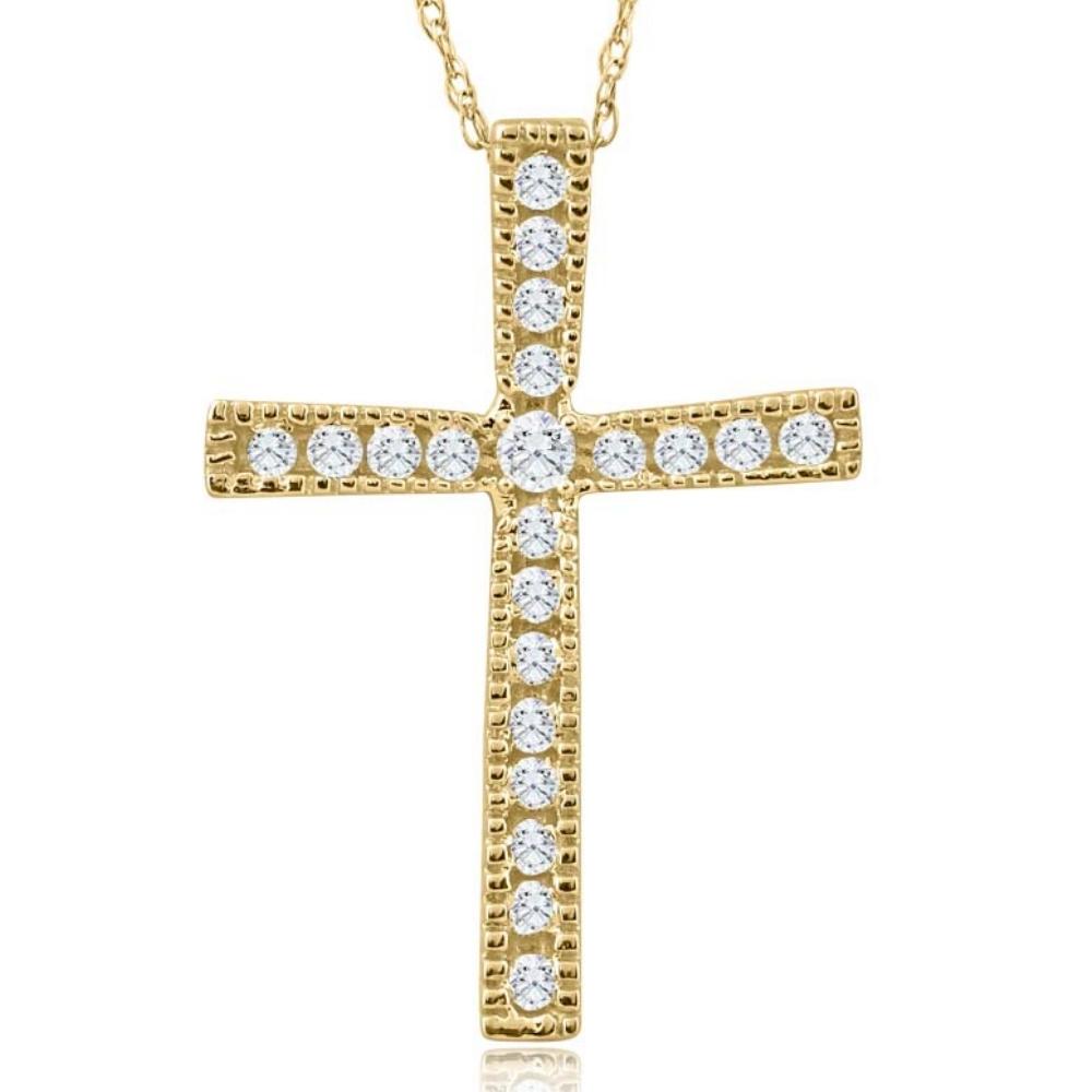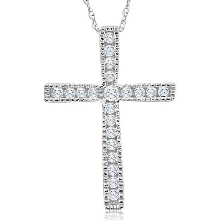 1/3Ct Round Cut Diamond Cross Pendant 10k White or Yellow Gold Necklace 1' Tall