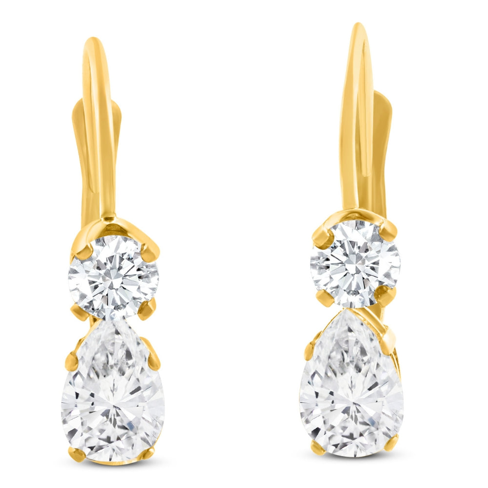 1Ct TW Pear Shaped Diamond Leverback Hoops Women's Earrings 14k Gold 1/2' Tall