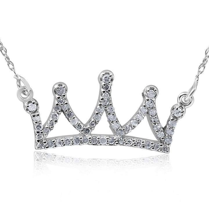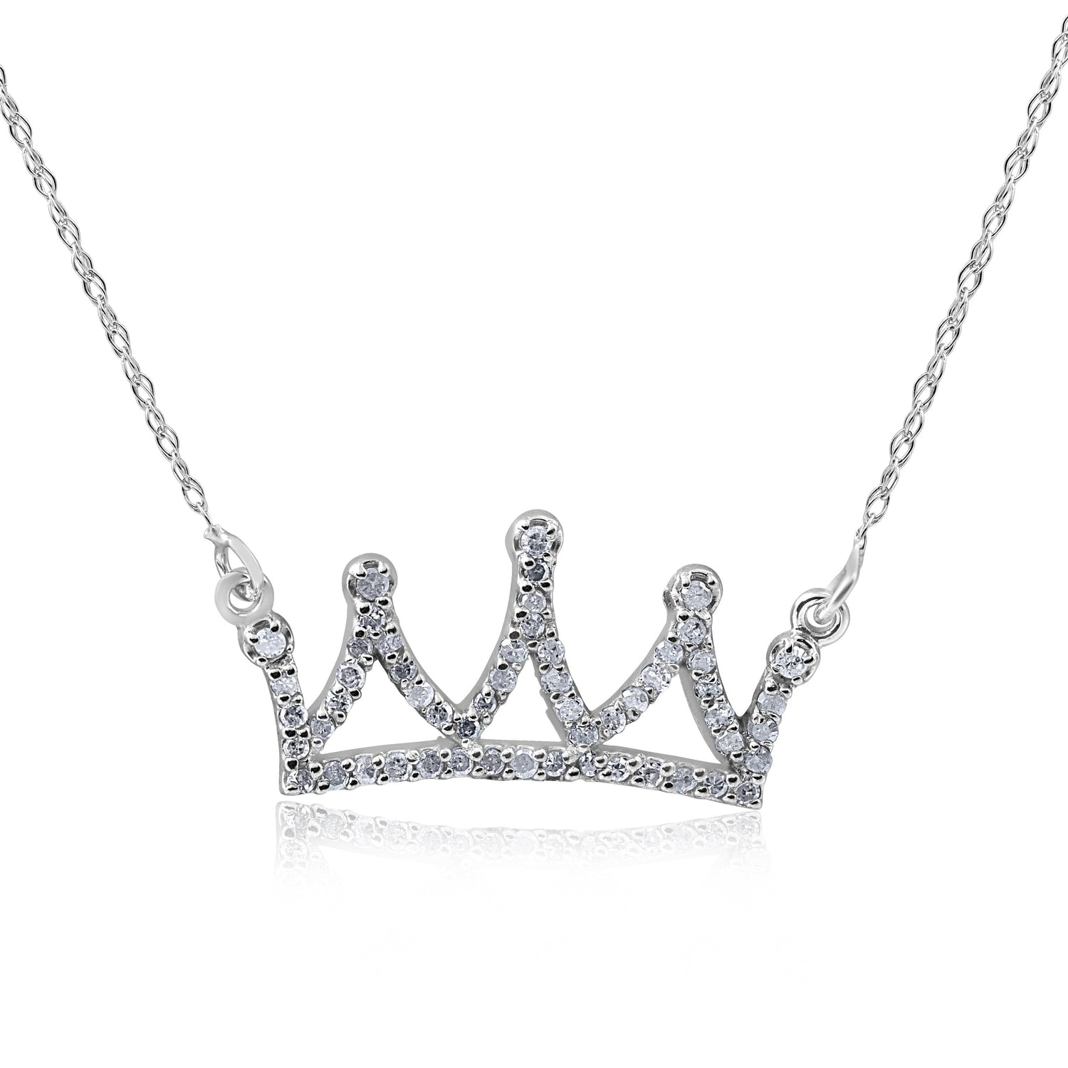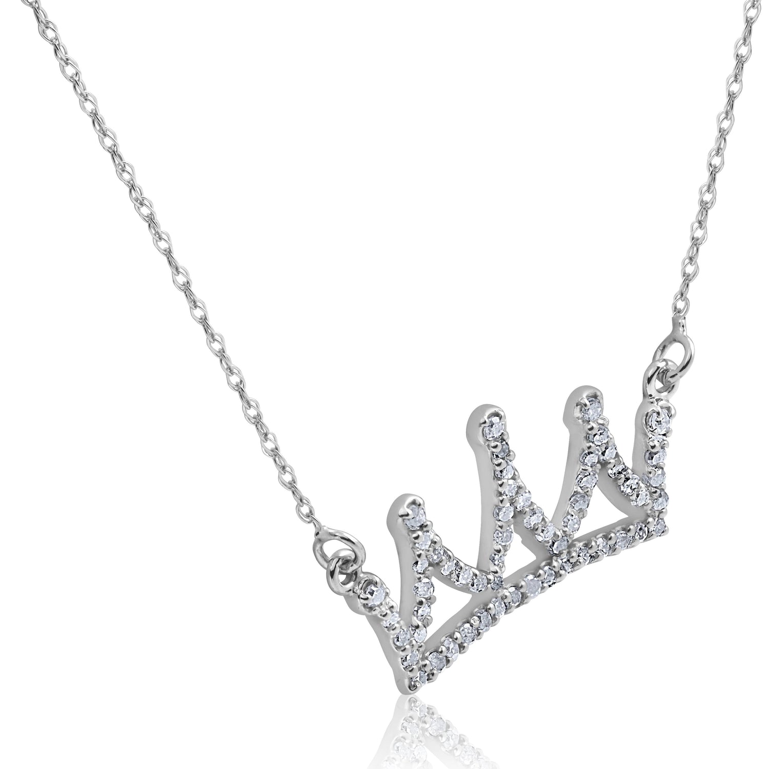 14kt White 1/6ctW Diamond Petite Crown 16.45' Necklace