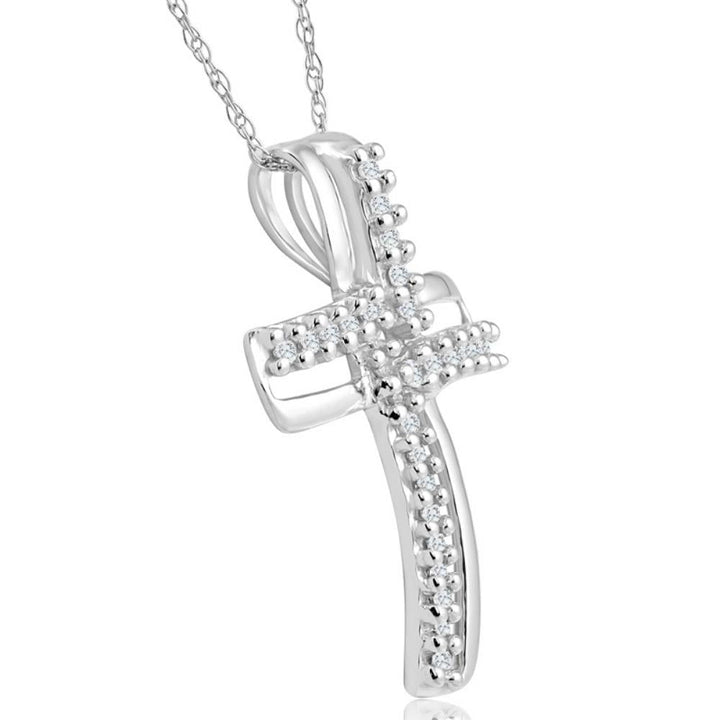 1/4Ct T.W. Diamond Cross 10k White Gold Pendant 18' Chain Necklace