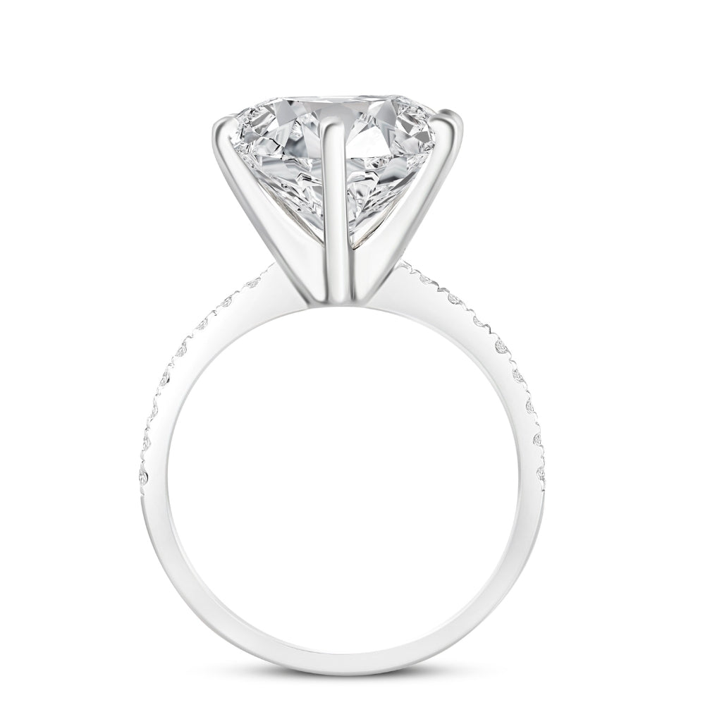 Made in 14k white gold with a 2ct certified lab-grown round diamond (GH color, VS2-SI1 clarity) and 16 round brilliant cut accent diamonds.