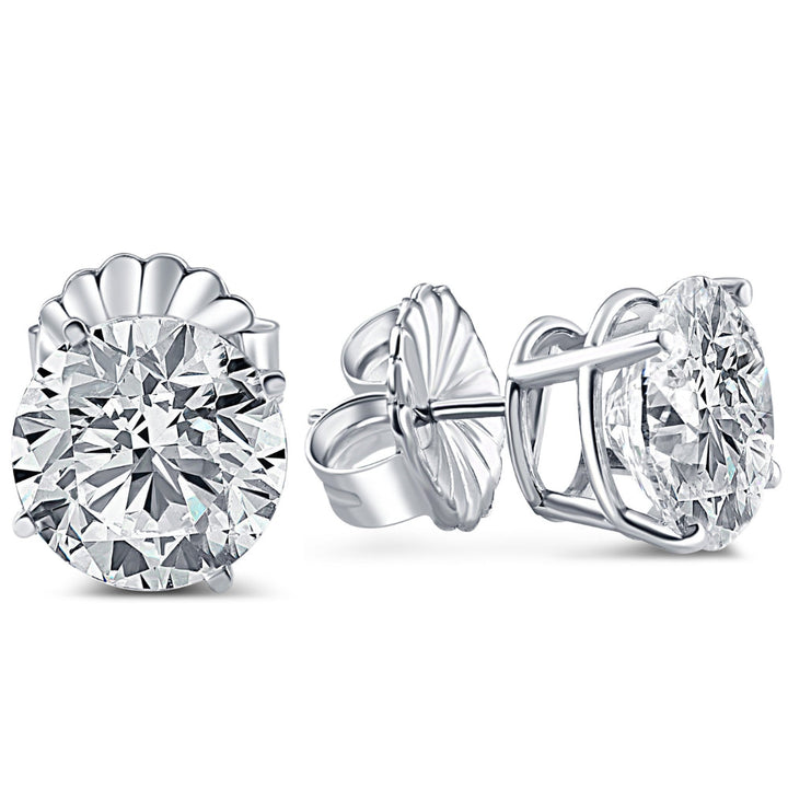 Handcrafted in 14k white gold with 6.00ct total of round brilliant cut lab-grown diamonds. Includes jumbo durable tension earring backs.