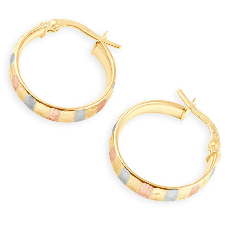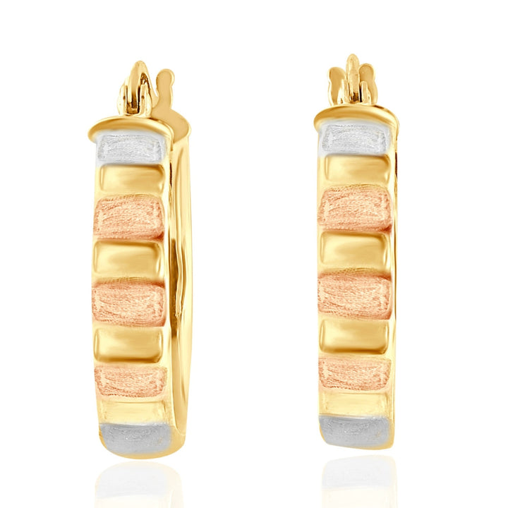 14k Yellow Gold 4mm Small Tri-Color Hoops Women's Earrings 3/4' Tall 1.35grams