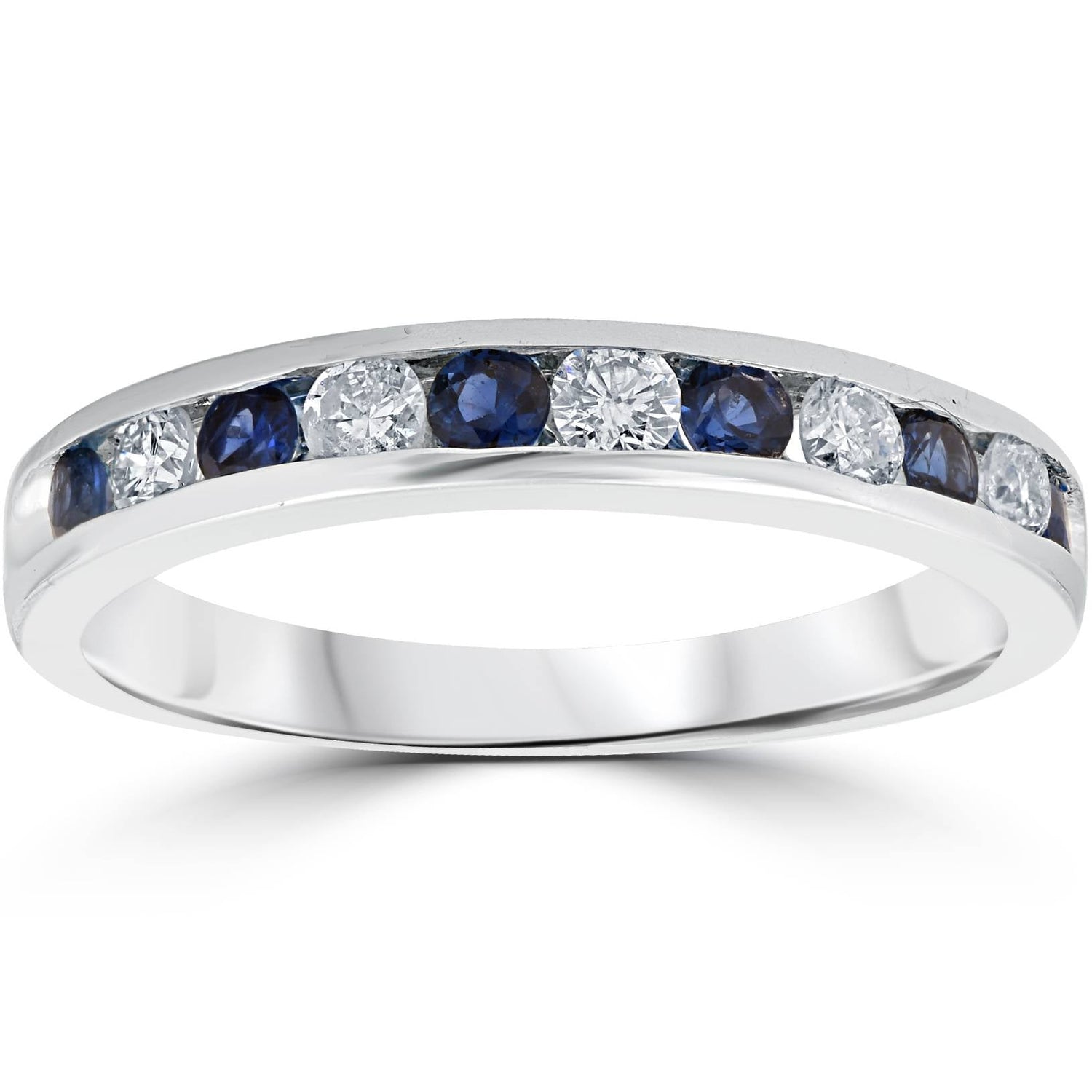 3/4ct Blue Sapphire & Diamond Channel Set Ring 14K White Gold