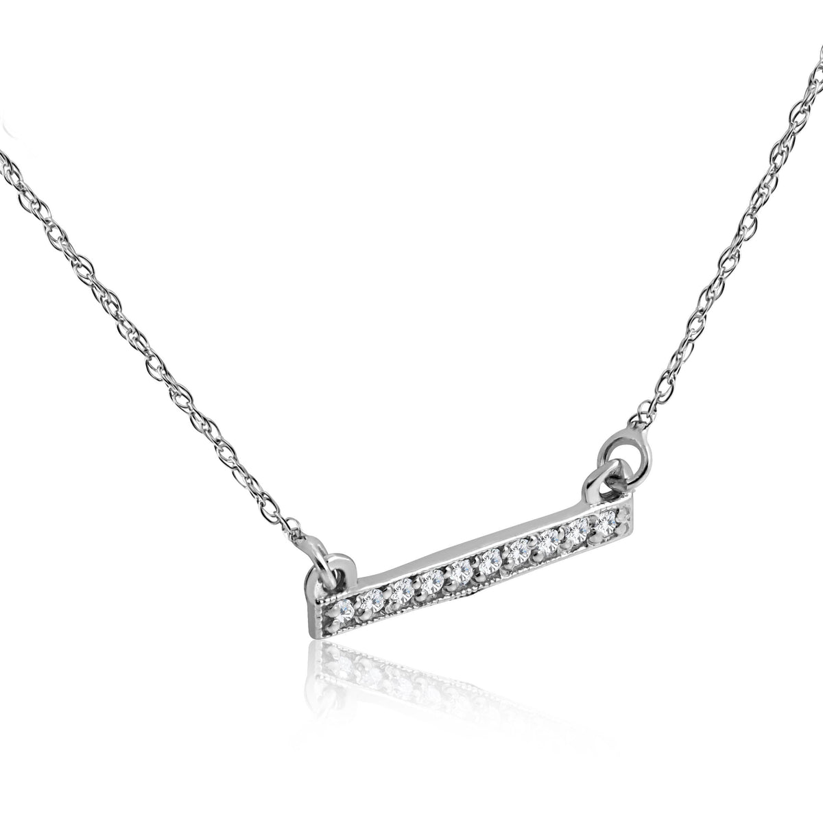 1/16ct Diamond Bar Pendant Necklace 14K White Gold