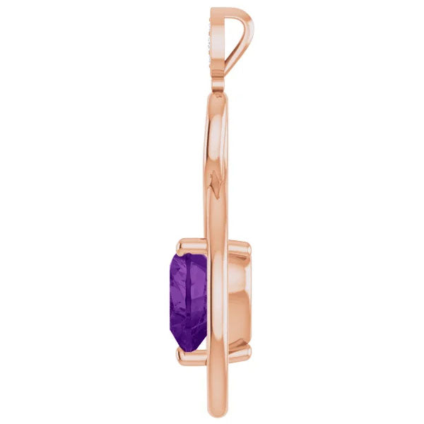 Set in solid 14k rose gold with a genuine 9mm amethyst gemstone. Includes an 18-inch 14k gold chain.