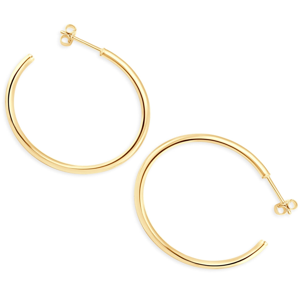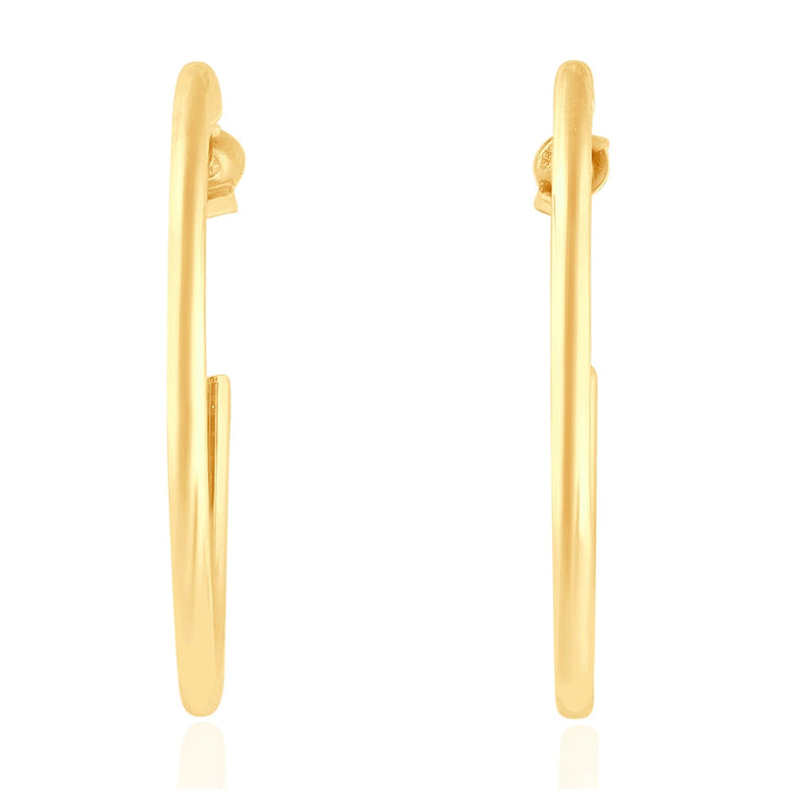 These 14K Yellow Gold 2mm Designer Hoops Women's Earrings by Pompeii3 are a simple yet elegant addition to any jewelry collection. Measuring 1 3/4' tall and 2mm wide, these hoop earrings feature a beautiful simplistic design that can be dressed up or down, making them versatile for any occasion.