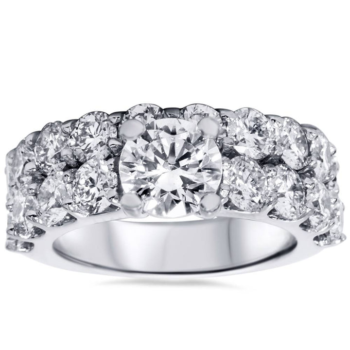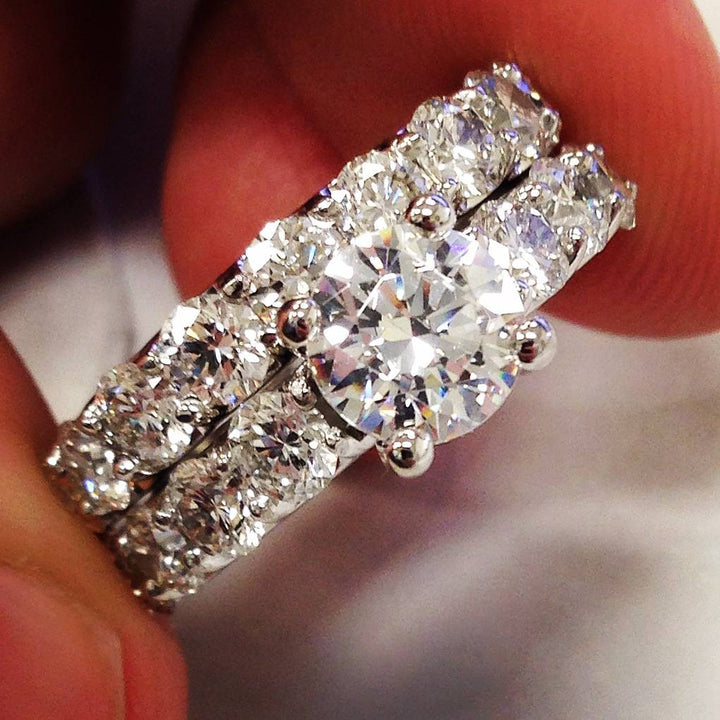 This breathtaking 6ct Diamond Engagement Ring Set by Pompeii3 is a statement of grandeur, featuring a dazzling 2.00Ct lab-grown center stone complemented by shimmering round accent diamonds. A matching wedding band completes this unforgettable bridal set.