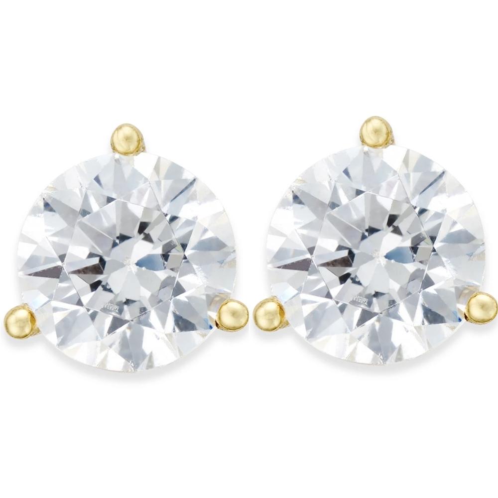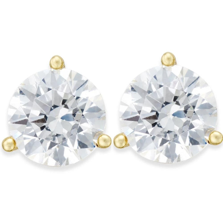 2 Ct TW Moissanite Martini 3-Prong Studs Available in White or Yellow Gold