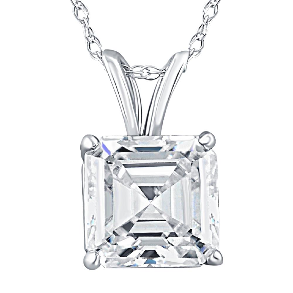 2 CT Asscher Cut Solitaire Pendant Necklace in 14k White, Yellow, or Rose Gold