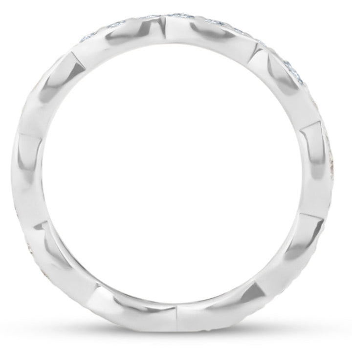 This 3/8ct Diamond Vintage Eternity Stackable Wedding Band by Pompeii3 is a timeless and elegant piece. With approximately 30 shimmering diamonds set in delicate milgrain-edged detail, this ring is perfect for stacking or wearing alone, offering vintage-inspired beauty with modern refinement.