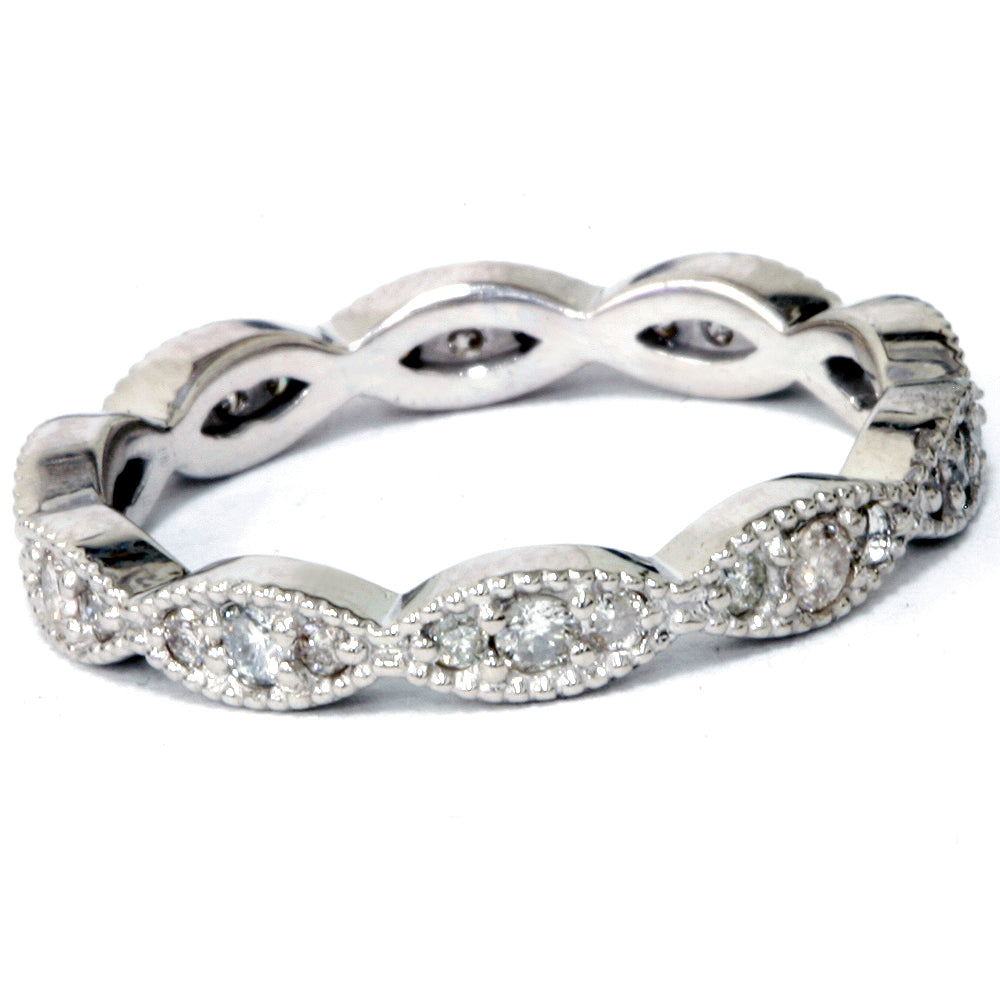 3/8 ct Diamond Vintage Eternity Ring Stackable Women's Wedding Band 14k White Gold