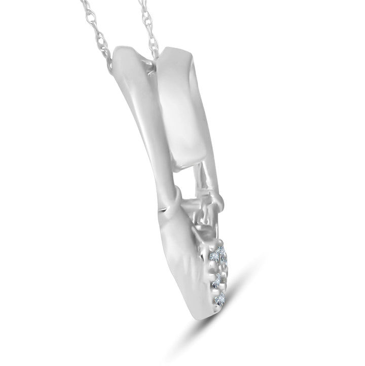 Handcrafted in 10k white gold with 1/20ct total of round brilliant cut natural diamonds. Includes an 18-inch 10k white gold clasp lock chain.