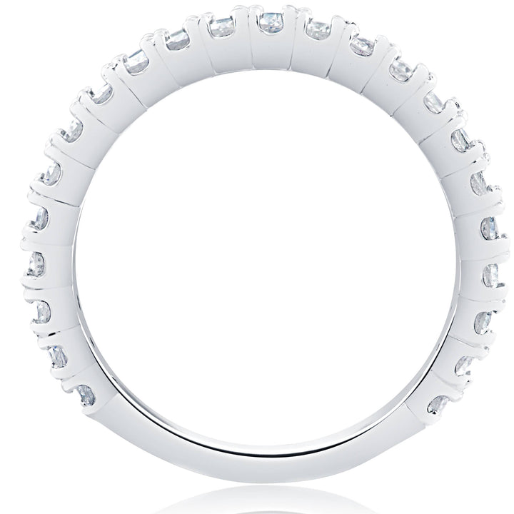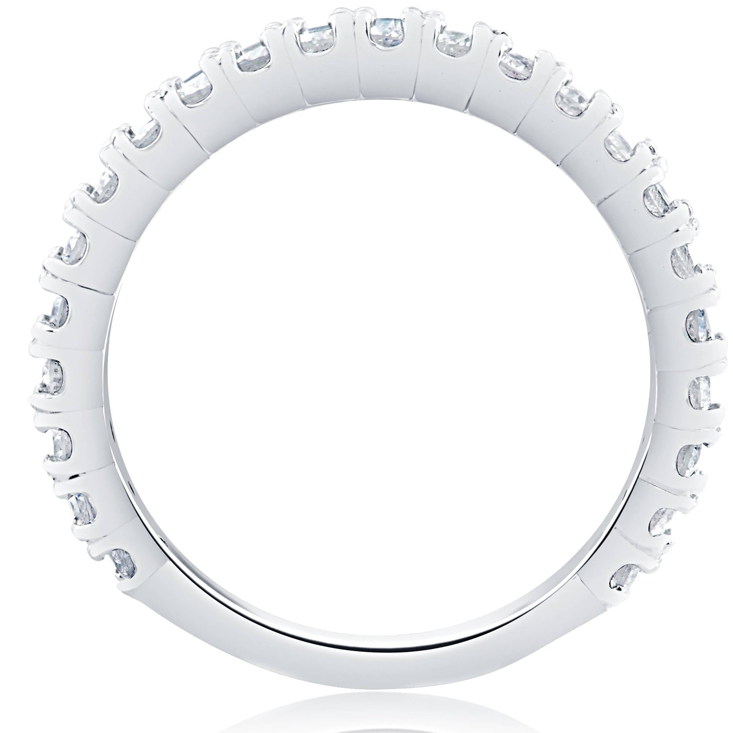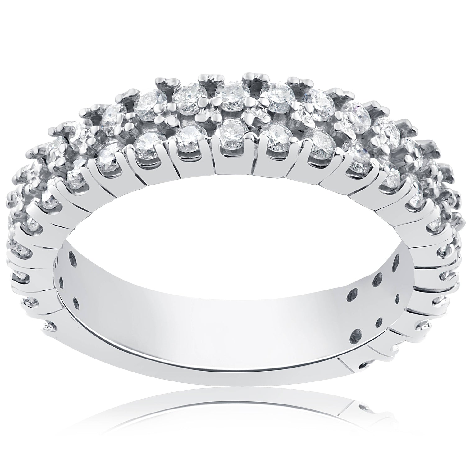 1 1/2 ct Half Eternity Double Row Diamond Wedding Stackable Ring 14K White Gold