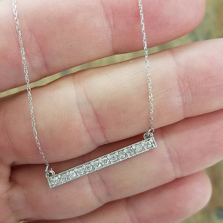 1/2 CT Bar Pendant Diamond Necklace in 14K White Gold (Not Enhanced) 1.2' Wide