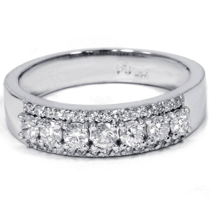 This 3/4ct Diamond Wedding Ring by Pompeii3 dazzles with its array of 37 meticulously set round-cut natural diamonds. A bold yet sophisticated design in 14k white gold, this ring makes a luxurious statement of commitment and sparkle.