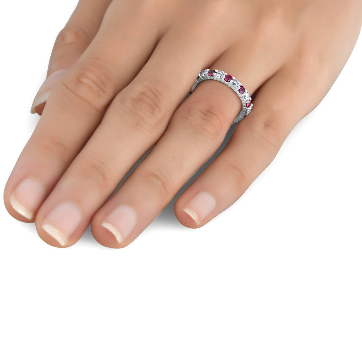 2 ct Ruby & Diamond Eternity Ring 14K White Gold Women's Stackable Wedding Band