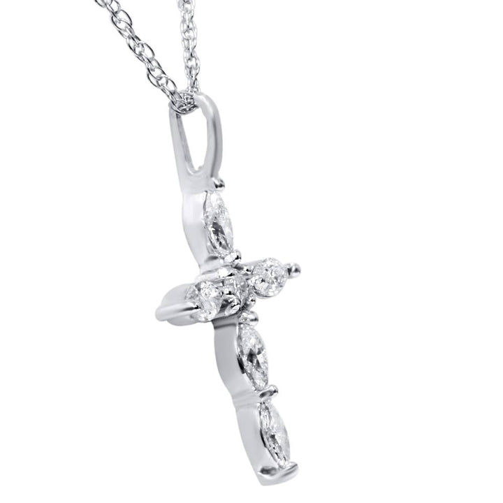 1/3ct Marquise Diamond Cross Pendant 14K White Gold