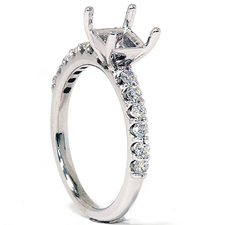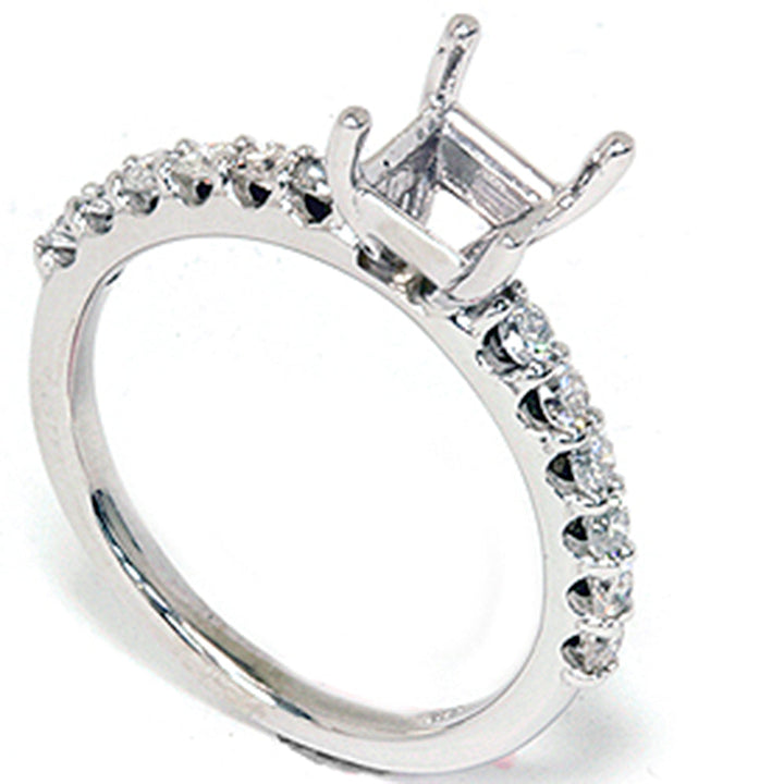 Handcrafted in 14k white gold with 12 round brilliant-cut natural diamonds (1/2ct total weight, I2-I3 clarity, G-H color). Ready to fit a 3/4–1 1/4ct square stone.