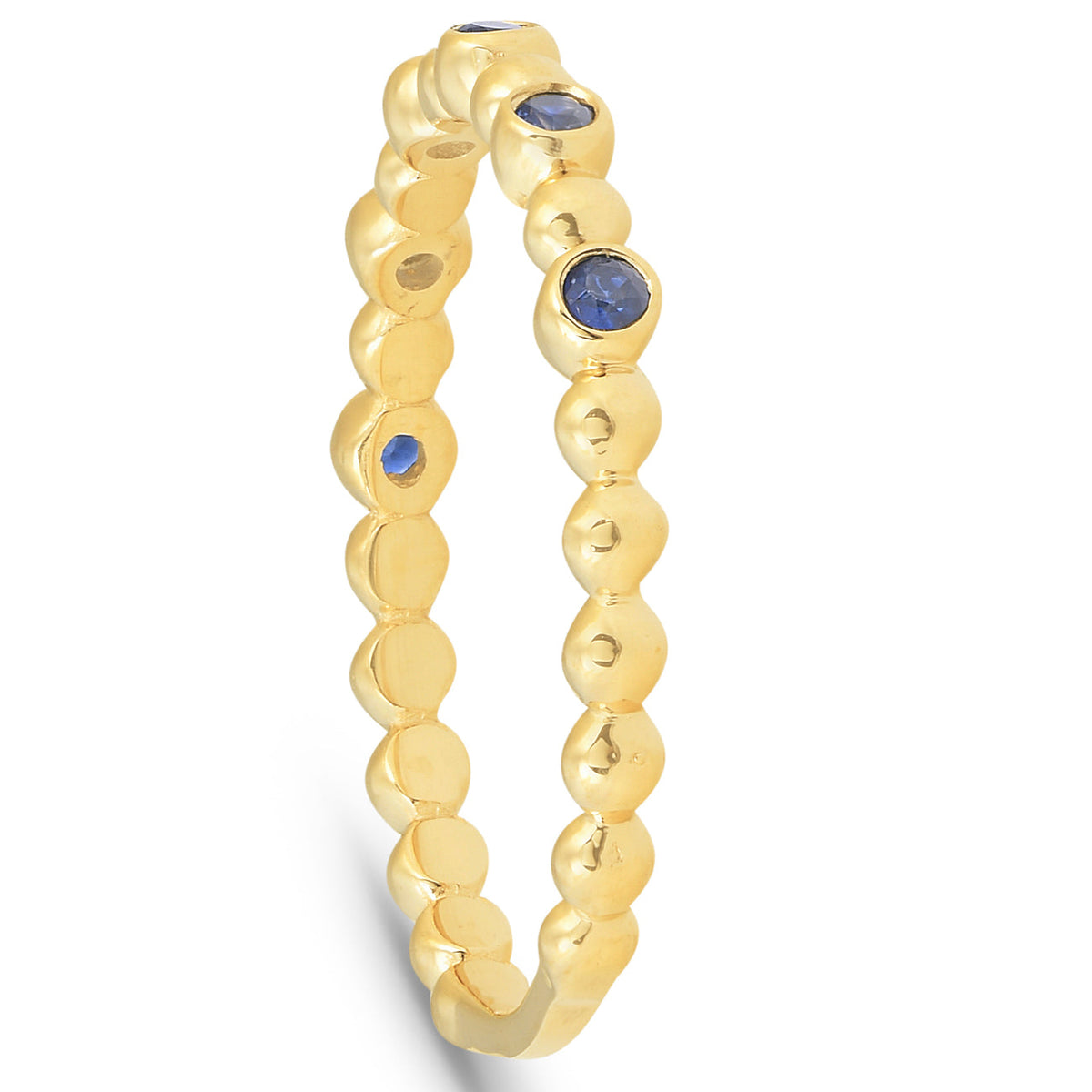 14k Yellow Gold Blue Sapphire Ring 1/8 ct Women's Stackable Beaded Band