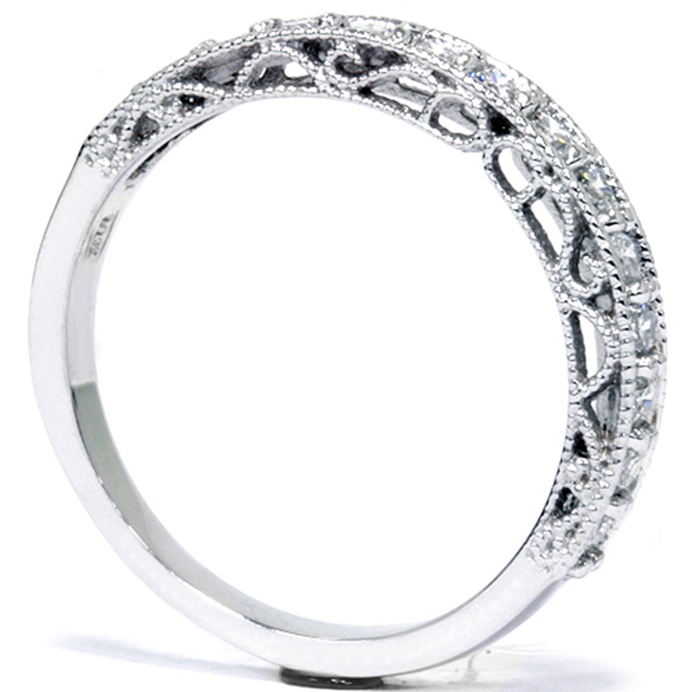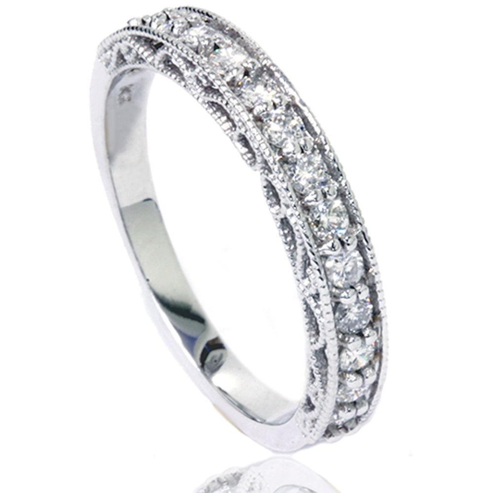 1/2 CT Vintage Diamond Wedding Ring 14K White Gold