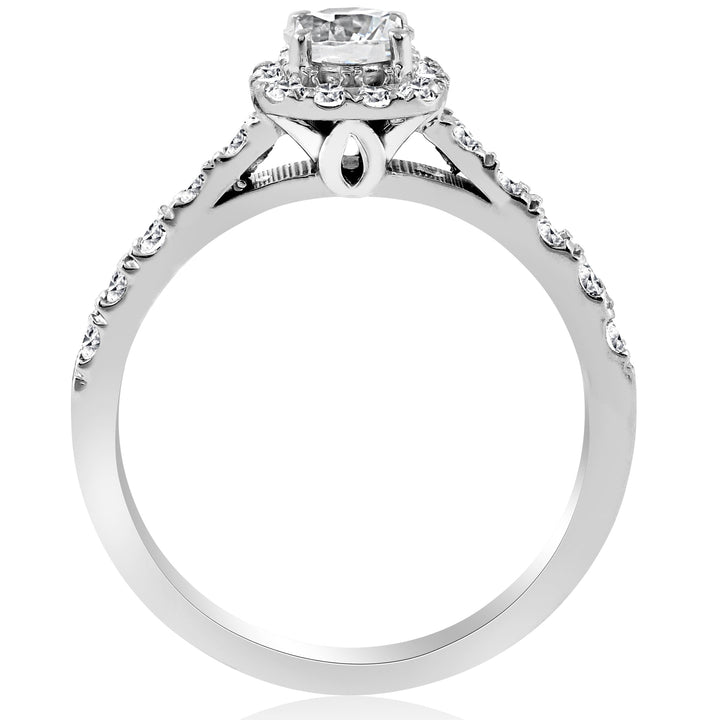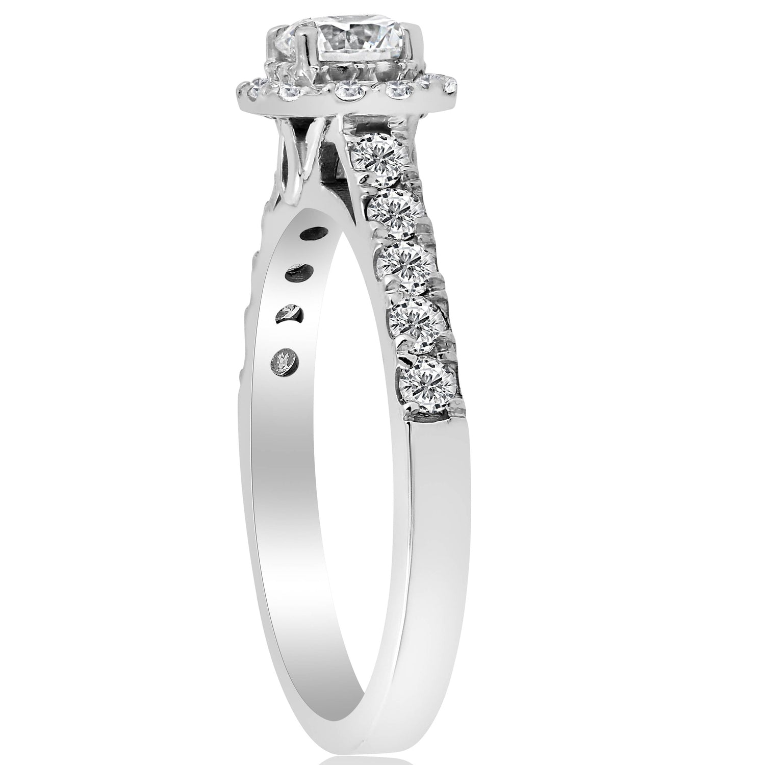 1ct Cushion Halo Diamond Engagement Ring 14K White Gold