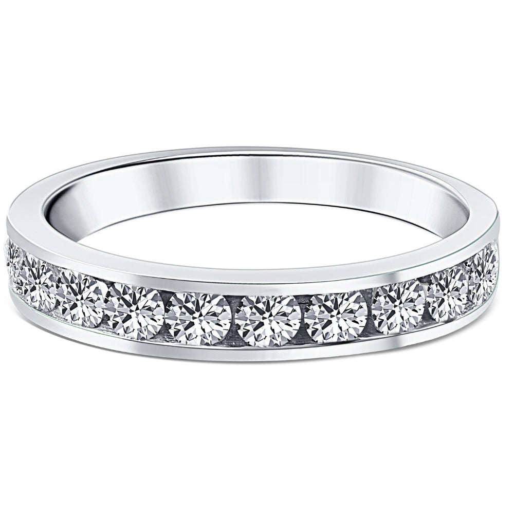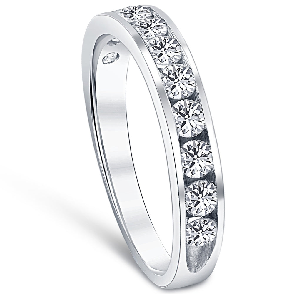 This 1ct Diamond Wedding Ring by Pompeii3 features stunning brilliance, with eleven round, brilliant-cut natural diamonds set in sleek 14k white gold for a bold, elegant finish.