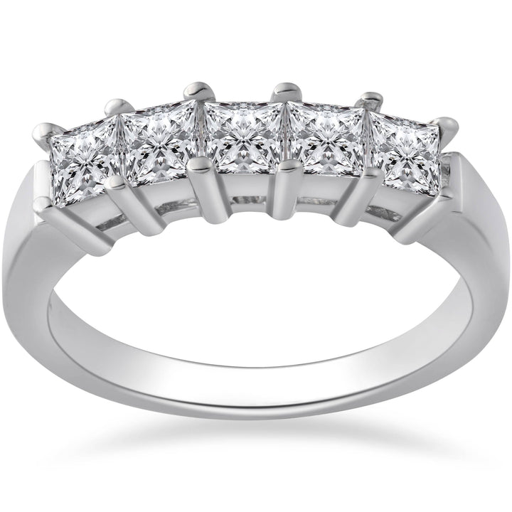This 1ct Five Stone Diamond Ring by Pompeii3 is a brilliant showcase of five princess-cut natural diamonds, representing strength, unity, and elegance in a beautifully crafted platinum setting.
