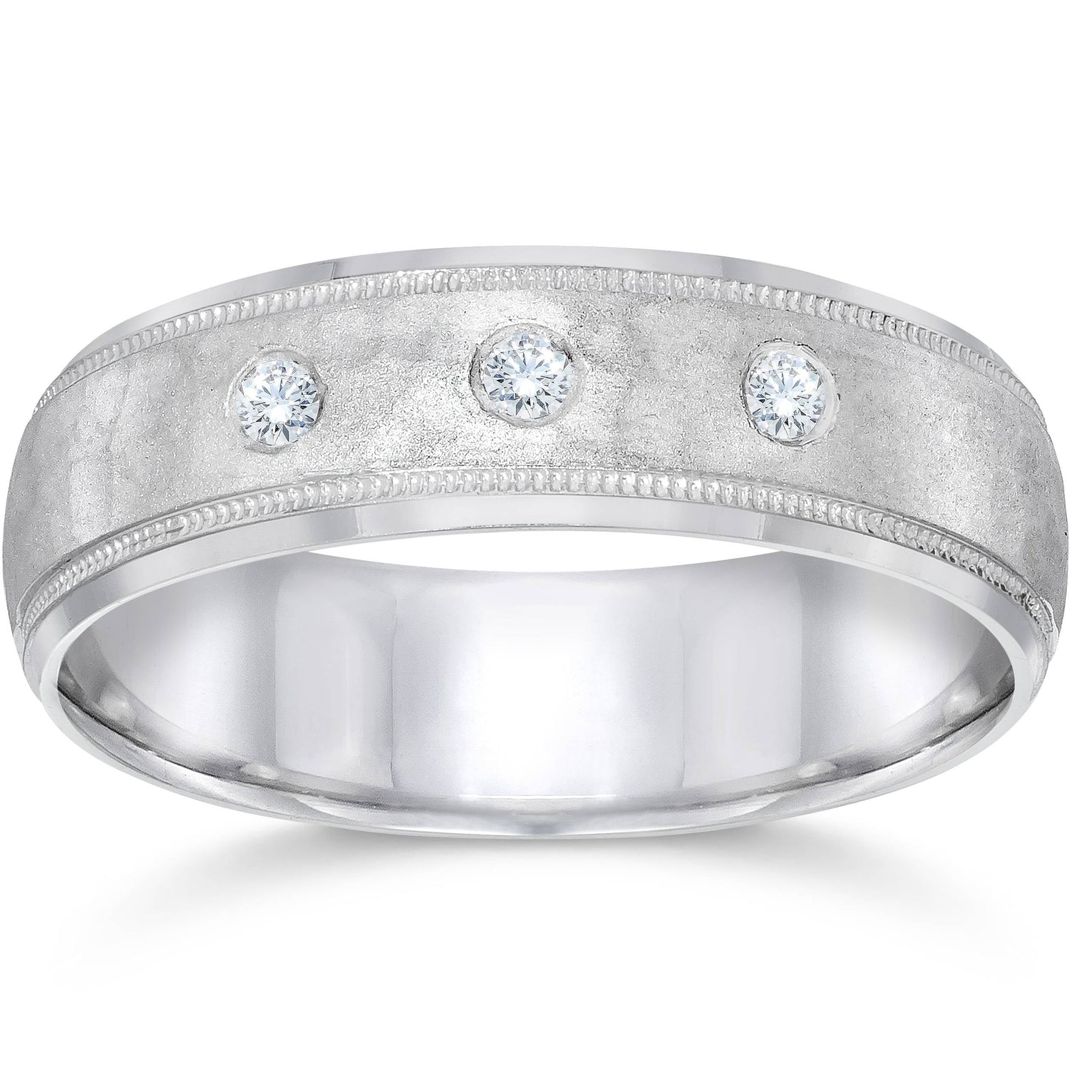 Hammered Diamond 6mm Wedding Band 10K White Gold